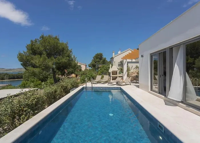 シベニク・聖バルバラ教会から7km離れた所に位置するベッドルーム2室のSullago シベニク ヴィラは、湖の眺めを望むテラスを提供しています。 プライベートなプールを提供するこのヴィラから自動車で15分離れたスビチェビッチ要塞お客様を招待いたします。